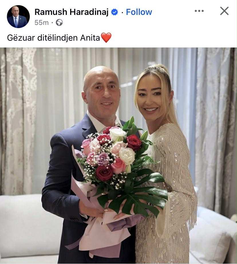 “Gëzuar ditëlindjen Anita” ishte shprehur Ramushi krahas fotos të përbashkët teksa shihet duke i dhuruar një buçet me lule.