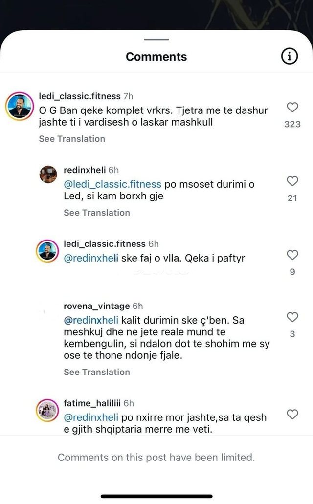 Në komentet e një videoje në faqen e “Big Brother VIP Albania” në ‘instagram’ Redin Xheli, partneri i Danjës, i ka kthyer komentin një tjetër personi i cili ofendonte G Banin për sjelljen e tij kundrejt Danjës.