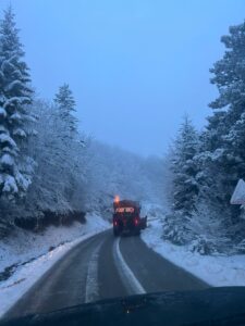 Këshillohet që qarkullimi të bëhet me goma dimërore dhe shpejtësi të reduktuar.