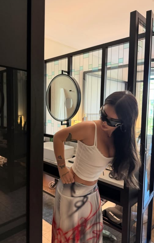 Ajo ka postuar fotografi nme rroba banjoje, nga udhëtimi dhe nga përgatitjet për të dalur.