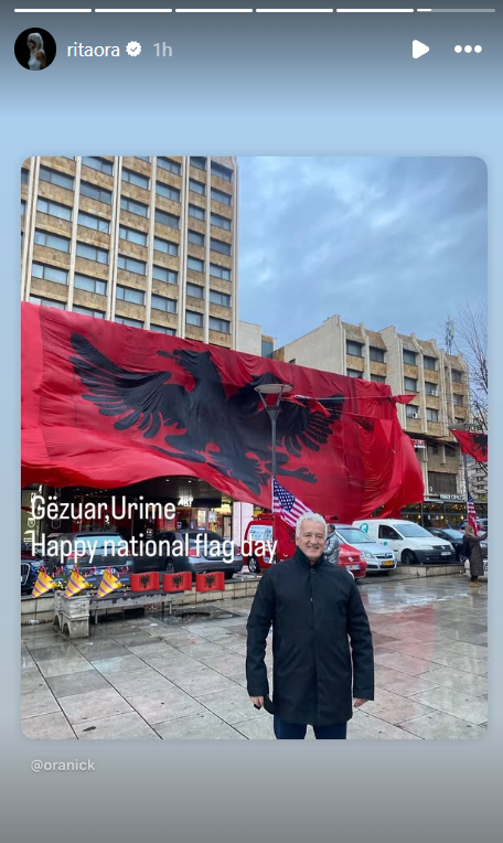 Superylli shqiptar me famë botërore, Rita Ora, ka uruar Ditën e Flamurit me një gjest të veçantë në Instastory.