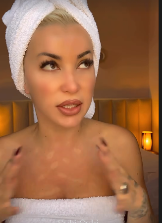 Por, edhe këtë herë ajo e dëshmon se është e guximshme pasi shihet e mbështjellë vetëm me peshqir.