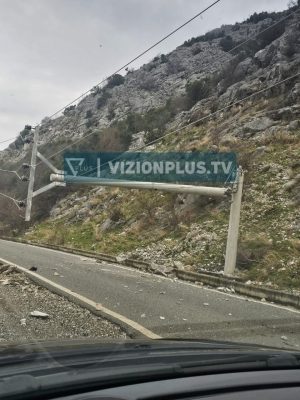 Një gurë i madh i shkëputur nga mali në Torovicë rrëzoi një shtyllë elektrike.