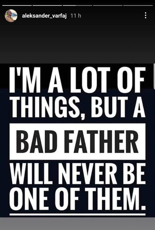 Pas këtyre lajmeve ka reaguar ka reaguar ish-bashkëshorti i aktores, Aleksandër Varfaj, i cili me anë të një postimi në instagram shkruan nuk do jetë kurrë një baba i keq.