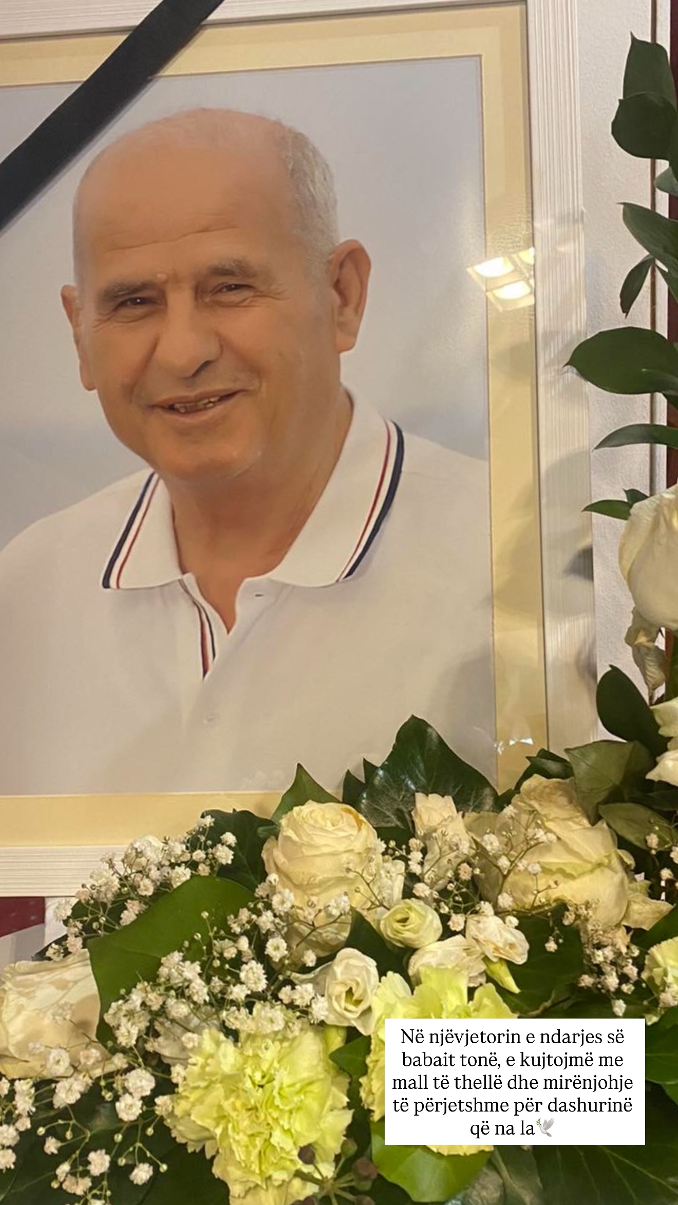 Mes luleve të bardha dhe fotos së tij, Ryva shpreh mallin e thellë për babain, duke e kujtuar si forcën dhe dritën e familjes së tyre.