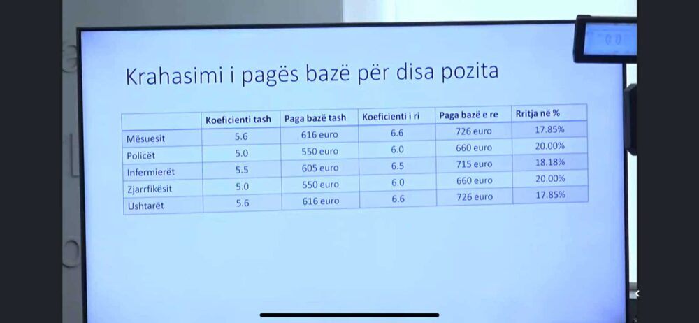 Po ashtu, edhe ministri i Financave, Hekuran Murati, sqaroi se pagat do të rriten 55 euro bruto nga janari për punëtorët e sektorit publik, ndërsa gjysma tjetër e koeficientit nga korriku, pra 110 euro shtesë.