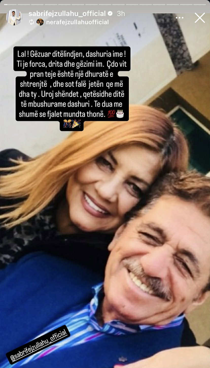 Nuk ka munguar as urimi nga bashkëshortja, Nera e cila kishte zgjedhur fjalët më të ngrohta “Lal, gëzuar ditëlindjen dashuria ime, ti je forca, drita dhe gëzimi im. Çdo vit pranë teje është dhuratë e shtrenjtë, dhe sot falë jetën qe më dhe ty. Uroj shëndet, qetësi dhe ditë të mbushura me dashuri. Të dua me shumë se fjalët mund ta thonë”.