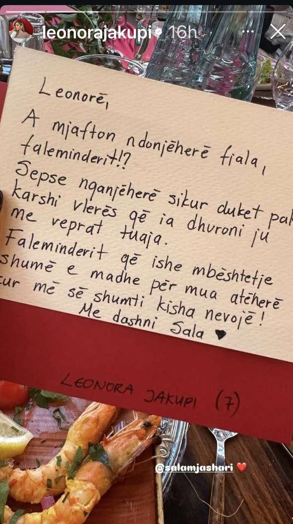 Përmes një letre të publikuar në rrjetet sociale, Sala i shkruan Leonorës duke i falënderuar për mbështetjen e dhënë, shkruan “Kosovarja”.