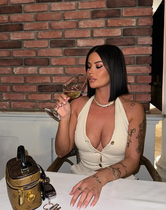 Në fotografitë e publikuara, Santiana shihet e veshur me bluzë të hapur dhe aksesorë të thjeshtë që nxjerrin në pah stilin e saj të rafinuar.