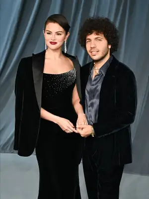 Artistja 33-vjeçare mahniti me një fustan elegant të zi, me zbukurime me shkëlqim që frymëzoheshin nga eleganca e Hollywood-it të vjetër. Ajo kishte veshur një xhaketë të zezë mbi fustanin, flokët e kapura lart dhe buzë të kuqe të theksuara. Ndërkohë, Blanco, 27 vjeç, u paraqit me një kostum të zi dhe këmishë blu, të pambyllur në pjesën e sipërme, duke shtuar një prekje më të relaksuar stilit të tij.