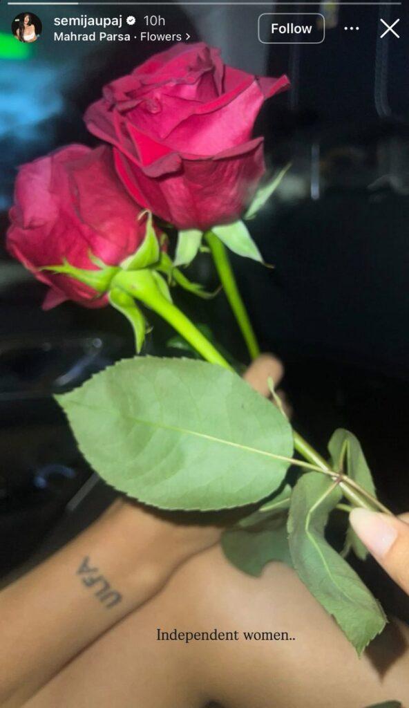 Së fundmi, Semi ka publikuar në rrjete sociale një imazh ku shfaqet me trëndafila të kuq, të cilin e ka shoqëruar me mbishkrimi: “Grua e pavarur”.