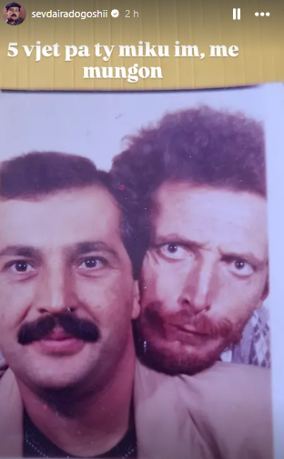 Në një fotografi të vjetër të publikuar, ai shfaqet krah Cimës, ndërsa mbi imazh shkruan: “5 vjet pa ty miku im, më mungon”.