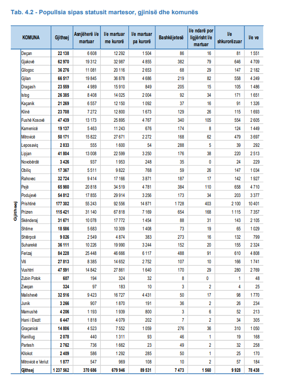 Agjencia e Statistikave të Kosovës ka publikuar sot rezultatet e para nga regjistrimi i popullsisë.