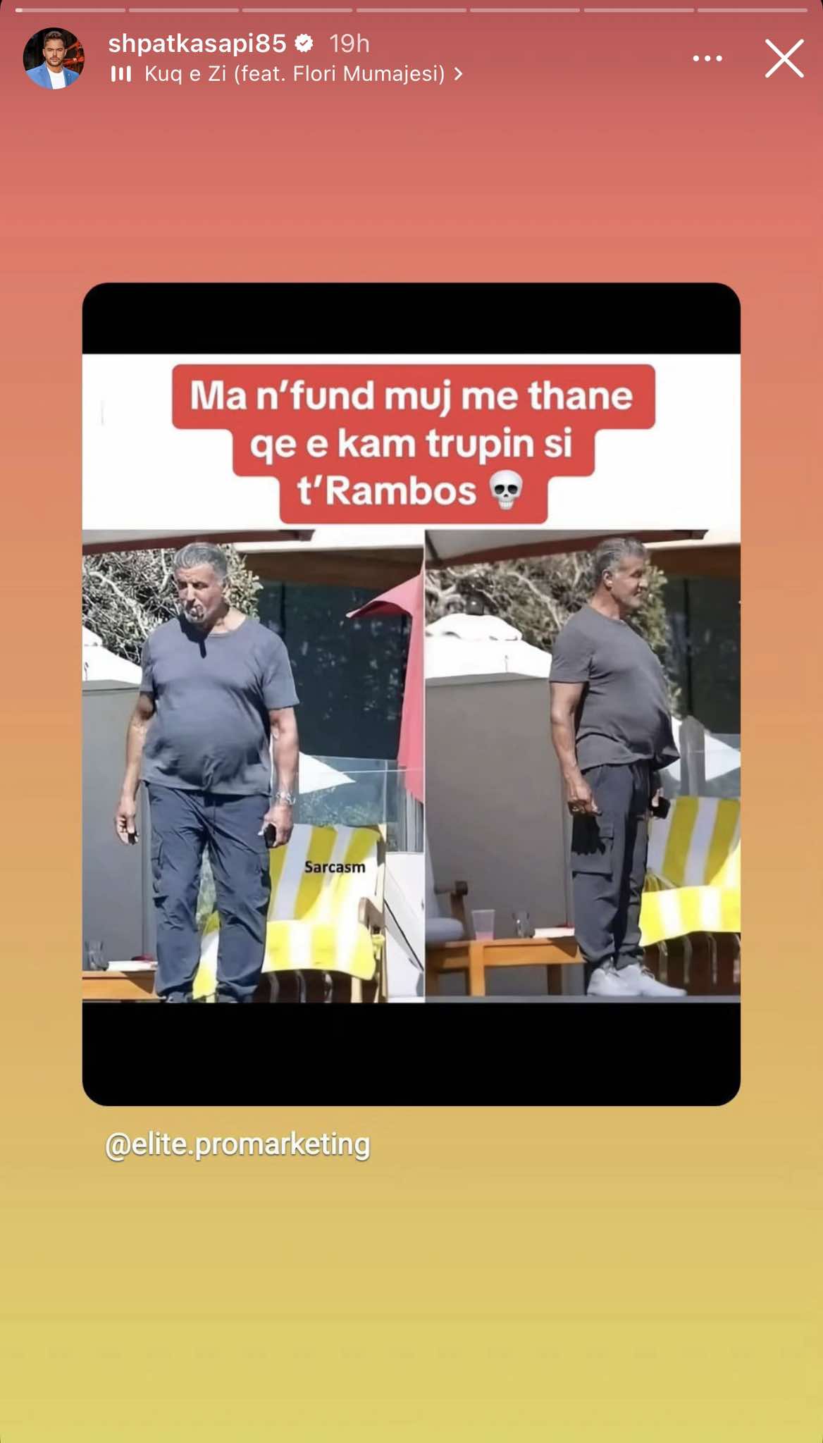 Së fundmi, Shpati ka publikuar në Instagram një foto të ikonës së filmave aksion, Rambo, por në një version disi ndryshe, me bark të madh.