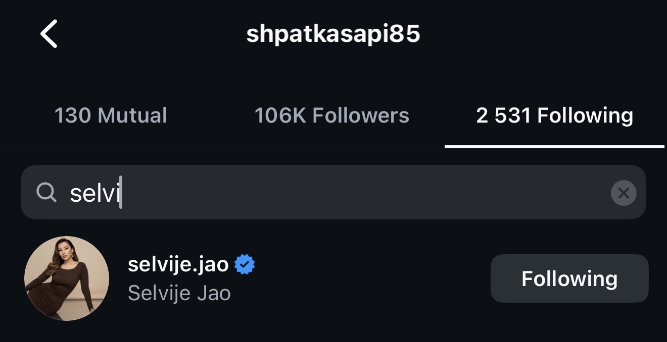 Shpati e ka bërë sërish follow ish-partneren e tij, Selvijen në Instagram.