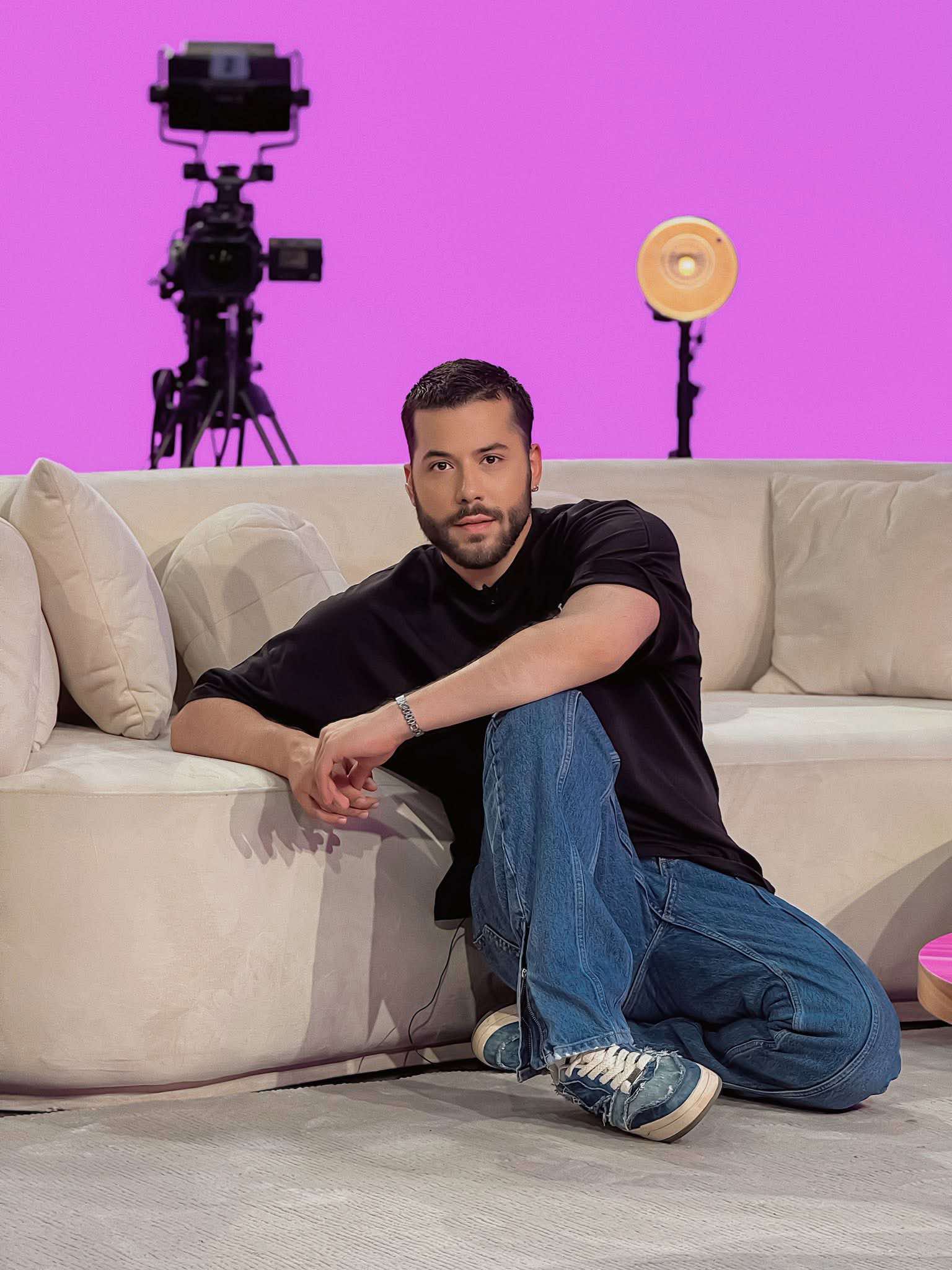 Por së fundmi, ai ka befasuar ndjekësit me një detaj të vogël, ama domethënës, me një foto ku shihet i ulur në dysheme dhe jo në canape-n karakteristike të emisionit.