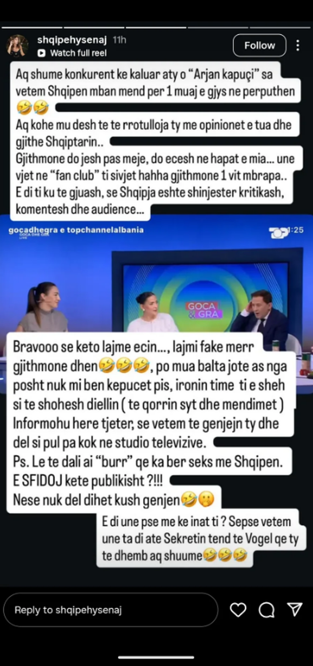Reagimi i fortë i Shqipe Hysenajt vjen në një moment kur debatet mes figurave publike në rrjetet sociale po marrin gjithnjë e më shumë vëmendje, duke u kthyer shpesh në përplasje publike me tone të ashpra.