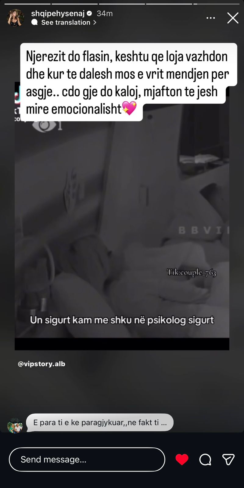 Përmes një videoje të postuar në “Instastory”.