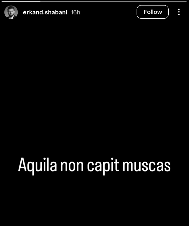 Në llogarinë e tij në Instastory, Shabani ka publikuar një shprehje të njohur latine në një sfond tërësisht të zi.