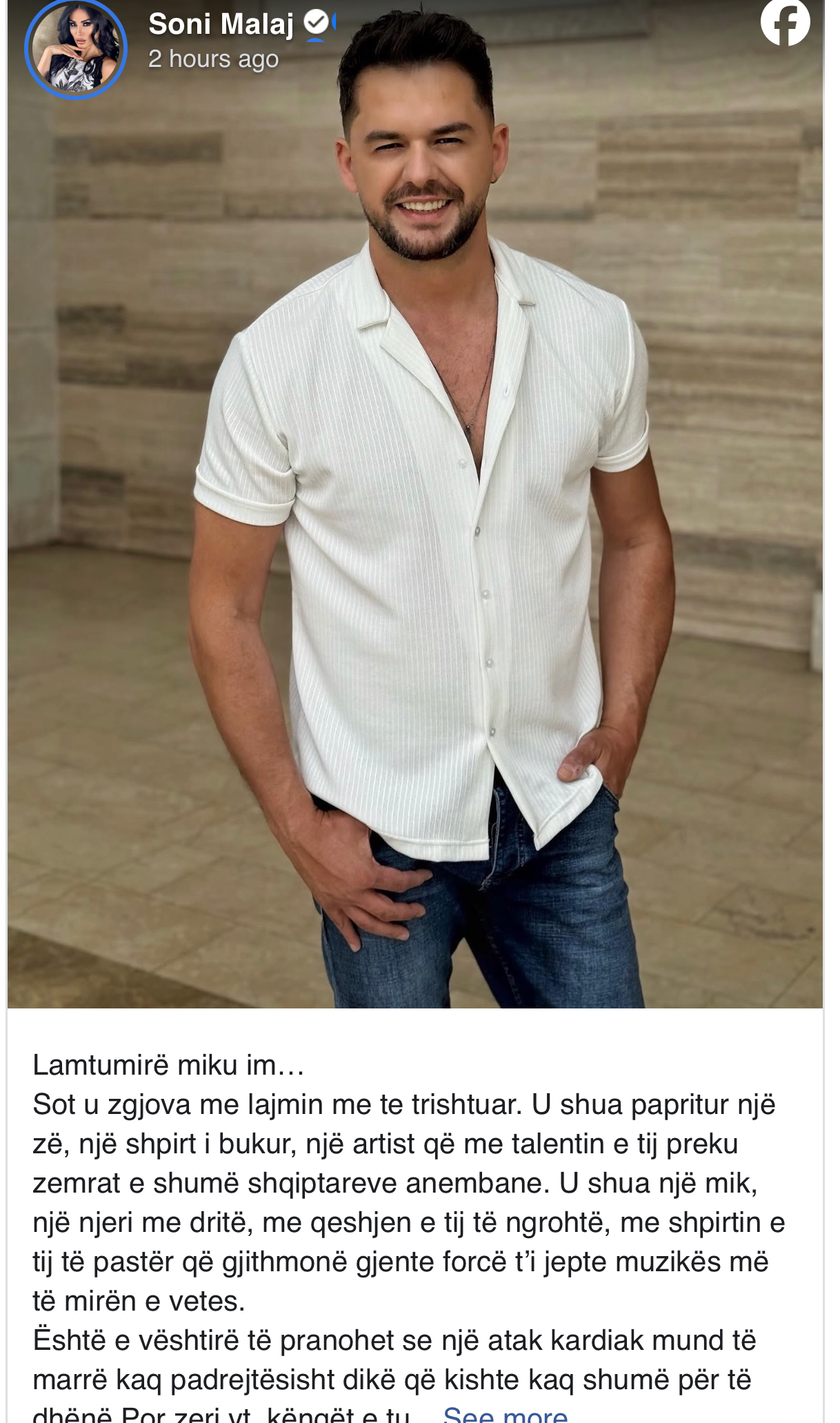 Mes shumë reagimeve të artistëve dhe fansave, Soni Malaj ka ndarë një mesazh të ndjerë në rrjetet sociale, duke përkujtuar mikun e tij dhe duke shprehur pikëllimin për humbjen e një artisti dhe njeriu të veçantë.
