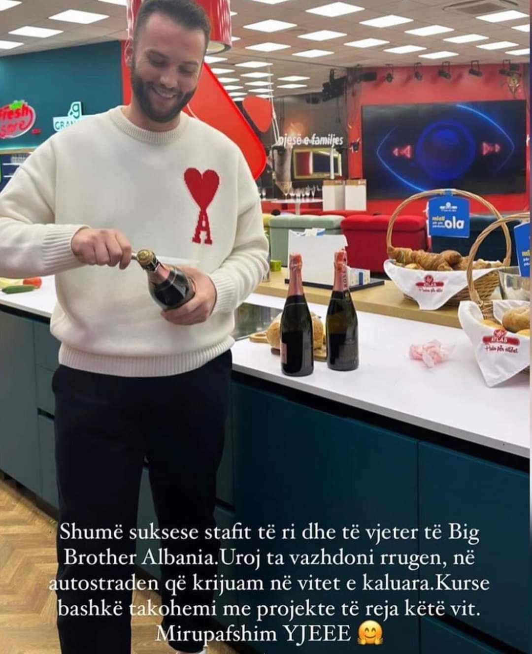 “Shumë suksese stafit të ri dhe të vjetër të Big Brother Albania. Uroj ta vazhdoni rrugën ne autostradën që krijuam në vitet e kaluara. Kurse bashkë takohemi me projekte të reja këtë vit. Mirupafshim Yjee”,- ka shkruar Grishaj bashkangjitur një foto të tij brenda shtëpisë së “Big Brother” në edicionin e kaluar.