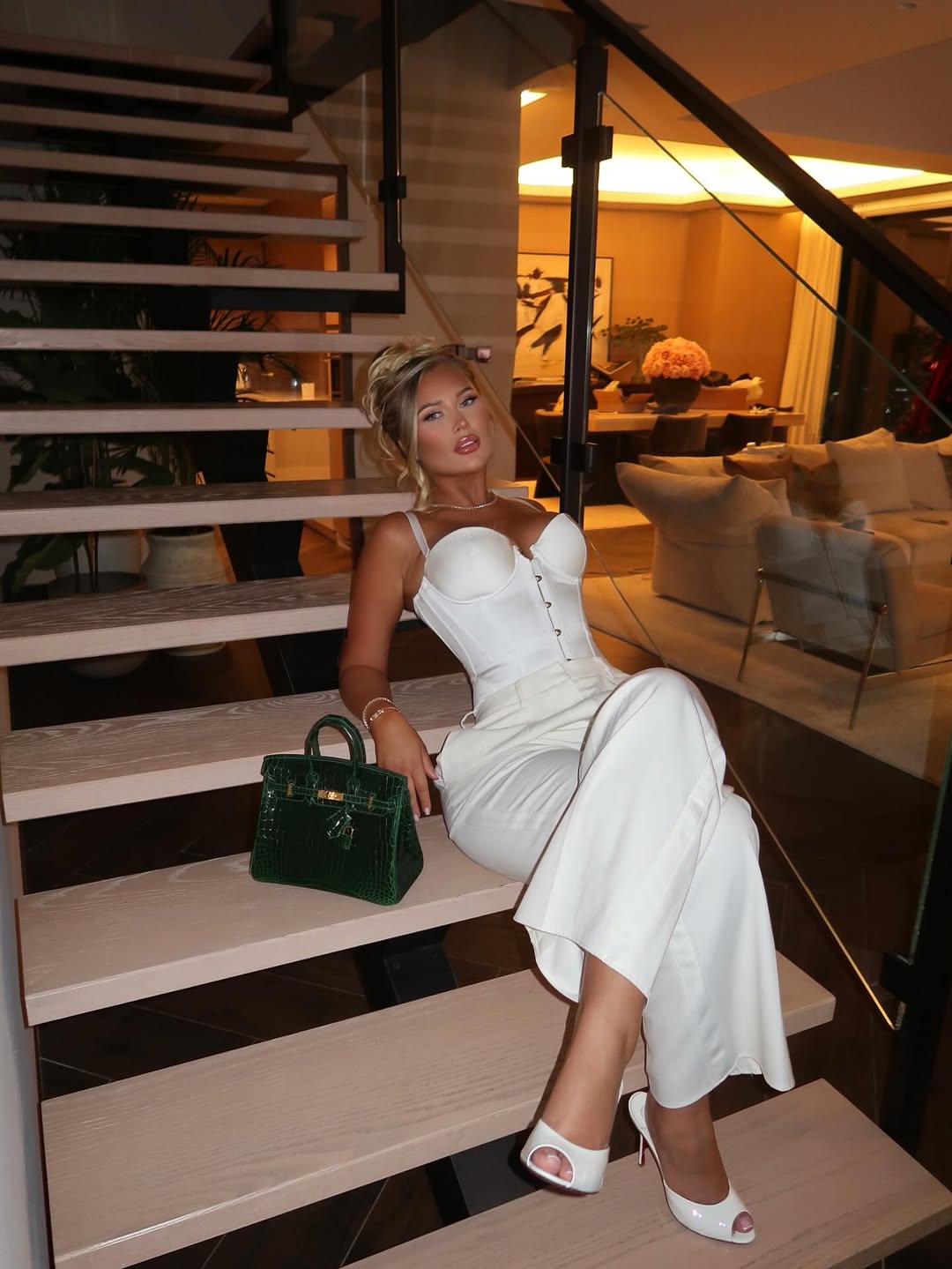 E ulur në shkallët e një ambienti modern dhe luksoz, Sophie duket plot vetëbesim dhe klas. Poza e saj tërheqëse dhe zgjedhja e ngjyrës së bardhë, një simbol i pastërtisë dhe elegancës, ka bërë që shumë ndjekës të ndajnë komente pozitive dhe komplimente.