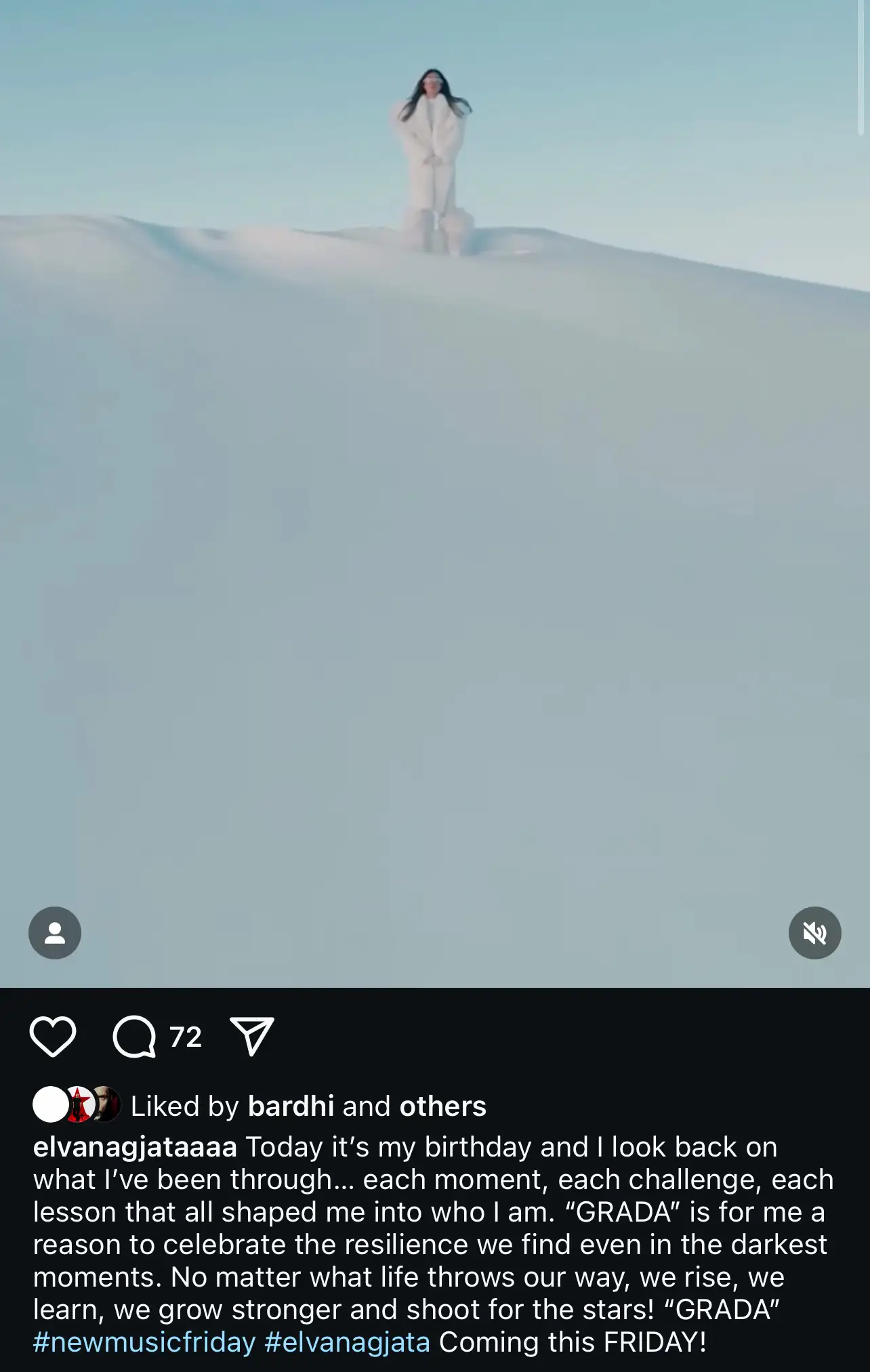 “Sot është ditëlindja ime dhe shikoj mbrapa në atë që kam kaluar… çdo moment, çdo sfidë, çdo mësim që më ka formuar të gjithë në atë që jam. “GRADA” është për mua një arsye për të festuar qëndresën që gjejmë edhe në momentet më të errëta. Pavarësisht se çfarë na hedh jeta, ne ngrihemi, mësojmë, bëhemi më të fortë dhe gjuajmë për yjet! “GRADA” #newmusicfriday #elvanagjata Vjen këtë të Premte!”– shkruan Elvana në ‘Instagram’.