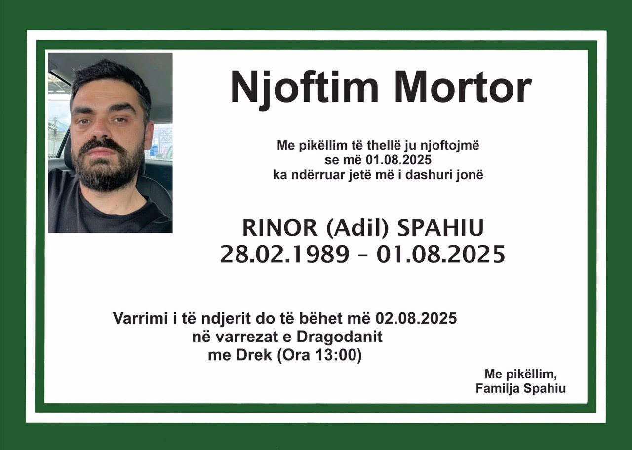 Varrimi i të ndjerit bëhet sot në ora 13:00 ne Varrezat e Dragodanit në Prishtinë.