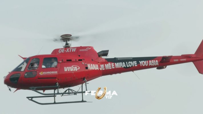 Një helikopter u shfaq mbi fermë, ku shkruhej: Nana je më e mira, të dua Asia!