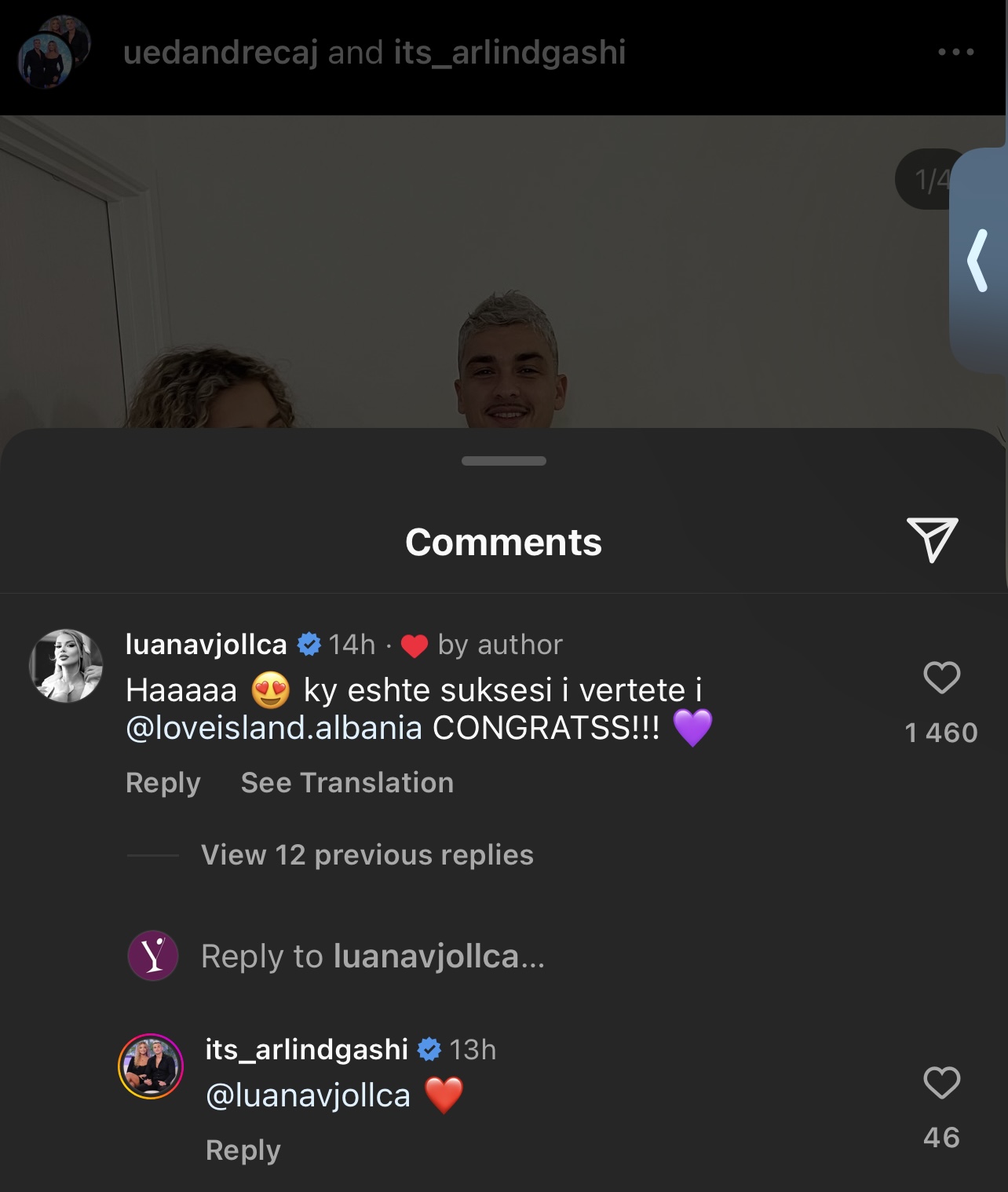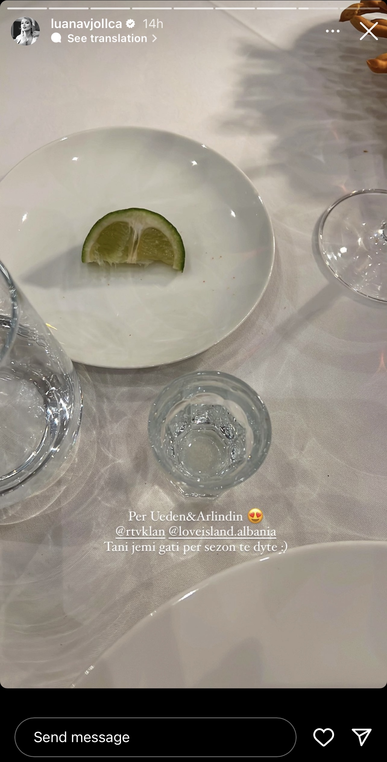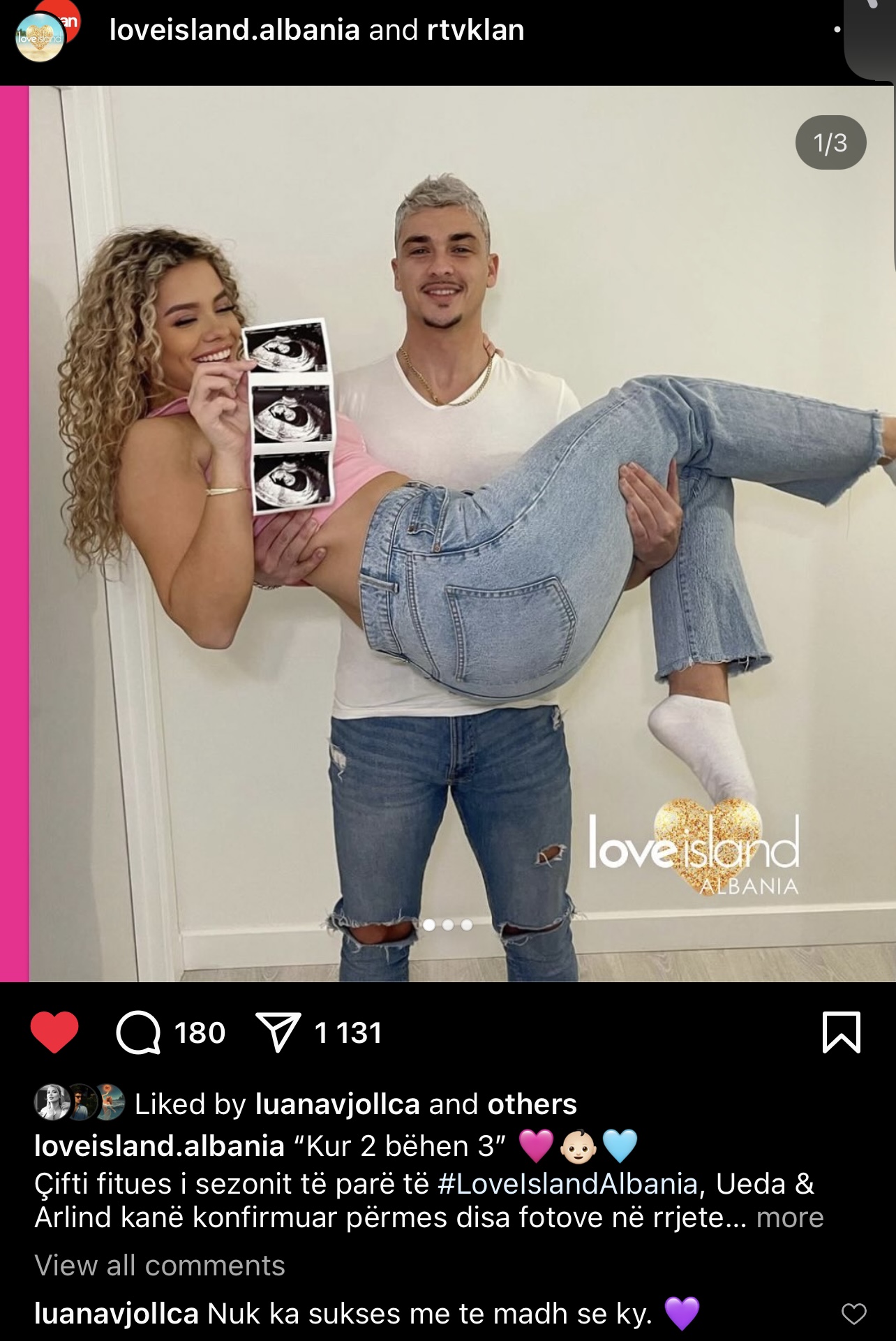 E themi këtë, nisur nga story që vetë Luana postoi teksa uronte çiftin.