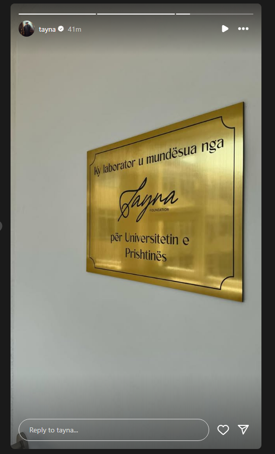 Më anë të një postimi në “Instastory” tregoi që ka financuar për hapjen e një laboratori për studentët e Universitetit të Prishtinës.