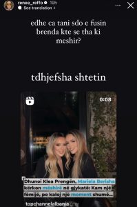 Sa i përket të motrës, Antonela Berisha, është caktuar masa “detyrim paraqitje”.Lidhur me këtë, ka reaguar edhe Renée Reffo, e cila shprehet kundër këtij vendimi.