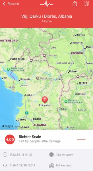 Një tërmet i fortë ka goditur para pak minutash në Shqipëri.
