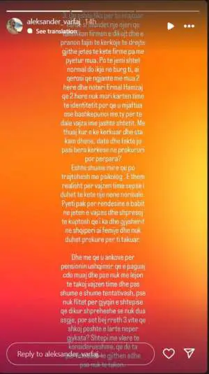 “Bën sikur harron besoj se llogarinë ma ke dhënë pas nuk e di sa kërkesash nga ana ime, që të isha ne rregull me shtetin, se ato pagesat që beja unë, kur të mori OPGJ në tel, i the ‘nuk ka paguar gjë’. Dhe justifikimi jot ishte “pse ça do thoja unë, qe i ke paguar”?”, shkruan ai në një reagim të gjatë në rrjetet sociale.