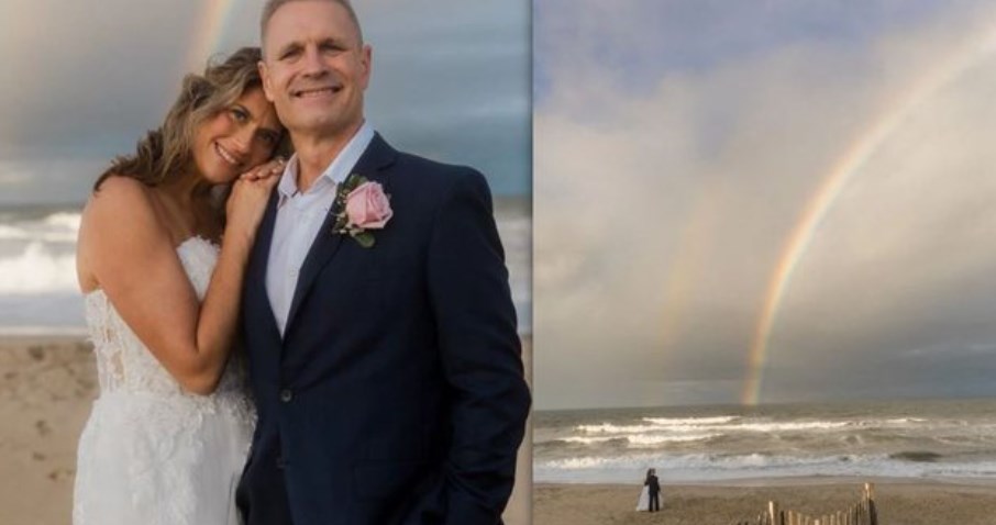 Pamjet e dasmës së çiftit buzë detit në Karolinën e Jugut janë mbresëlënëse. “Ra shi gjithë ditën. Por pak minuta para ceremonisë, doli dielli. E jo vetëm kaq, një ylber i dyfishtë zbukuroi horizontin për plot 40 minuta”, shpjegon fotografja.