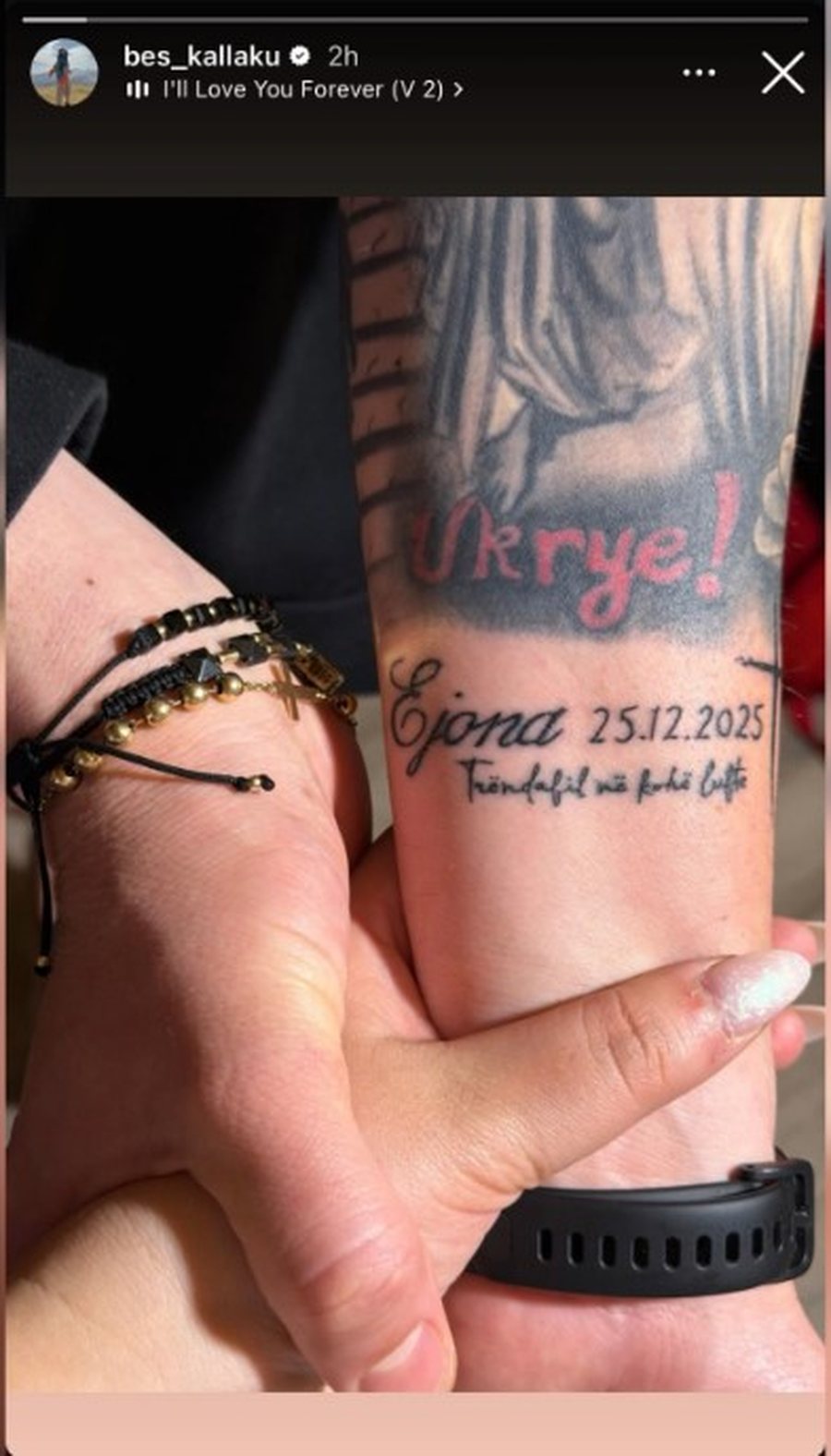Kjo e fundit është përforcuar më shumë dhe nga shkrimi në dorën e tij “Trëndafil në kohë lufte” dhe data “25.12.2025″, ndërsa fotoja shoqërohej me tingujt e këngës “I’ll love you forever”.