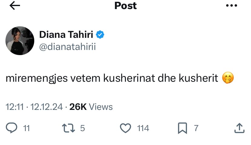 Diana për këto thashetheme ka reaguar përmes një postimi “Mirëmëngjesi vetëm kusherinat dhe kusherit”.