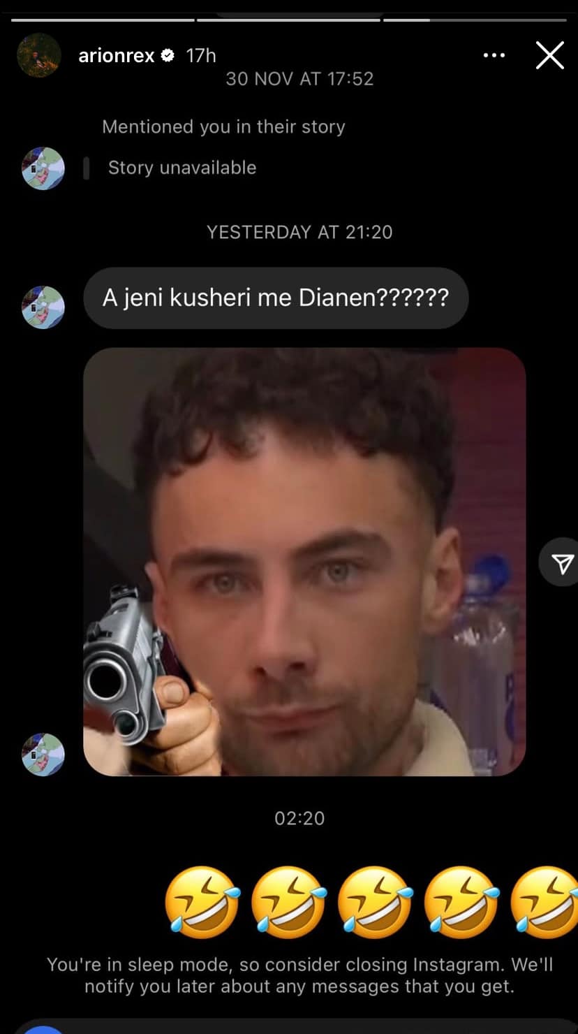 Kurse nuk shkoi shumë erdhi edhe reagimi i Arionit teksa e pyeten ndjekësit se “A jeni kushëri me Dianën” ai ka vazhduar duke i bashkangjitur disa emoi me buzëqeshje.