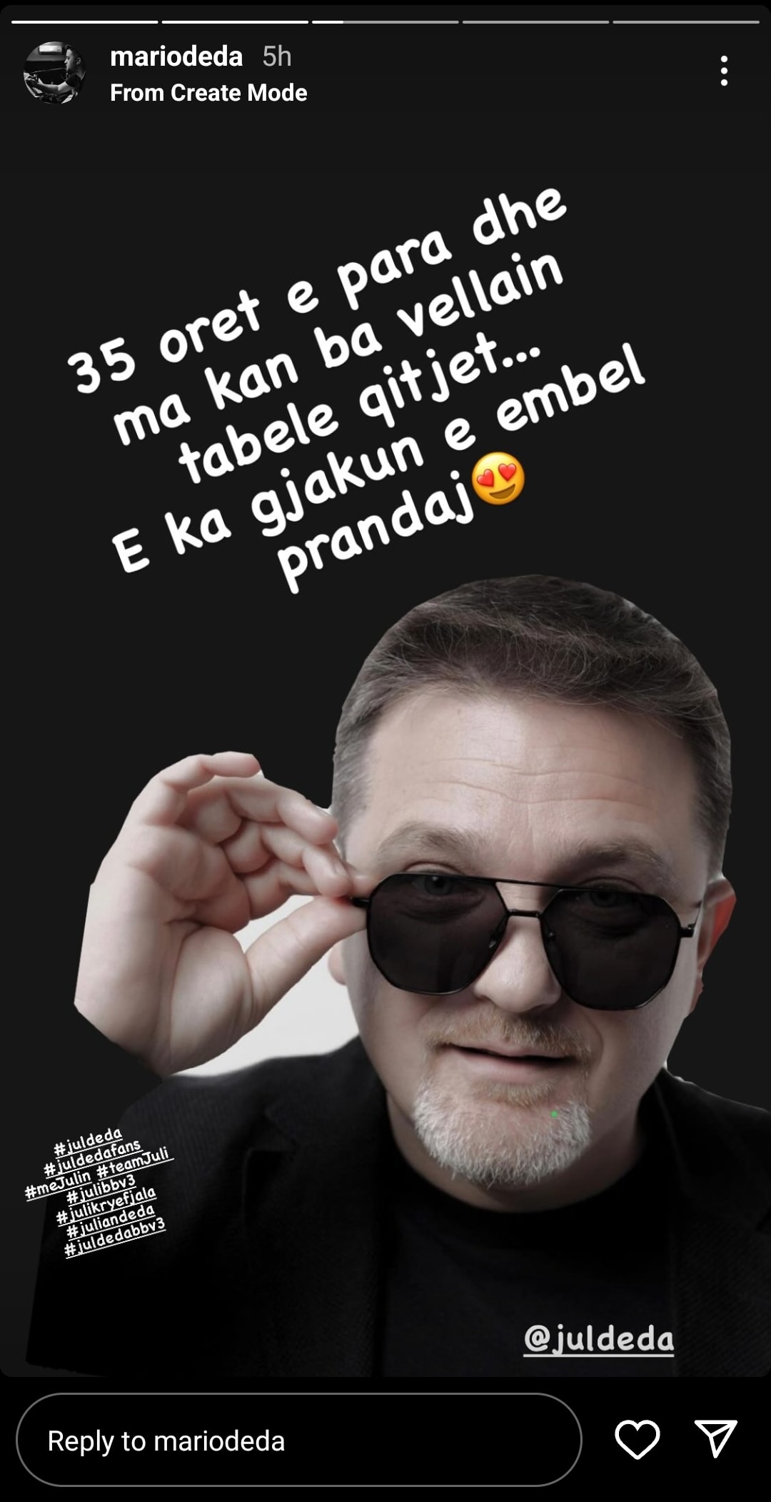 Përsa i përket këtyre komenteve, vëllai i Julit, Mario Deda, ka reaguar me anë të një postimi në InstaStory.