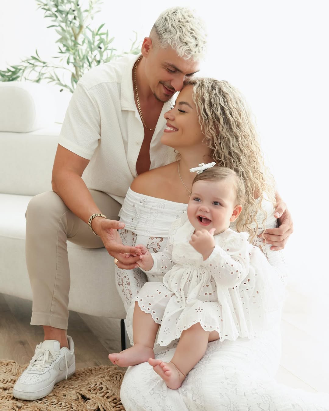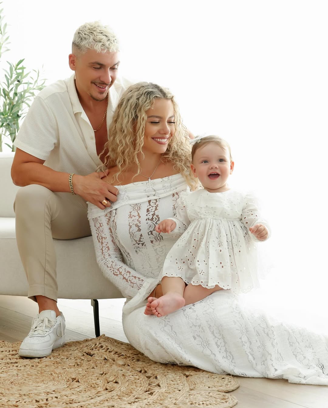 Për ditëlindjen e saj të parë, çifti realizoi një fotosesion familjar që tërhoqi vëmendjen e rrjeteve sociale, duke ndarë me ndjekësit momente plot dashuri dhe ngrohtësi.