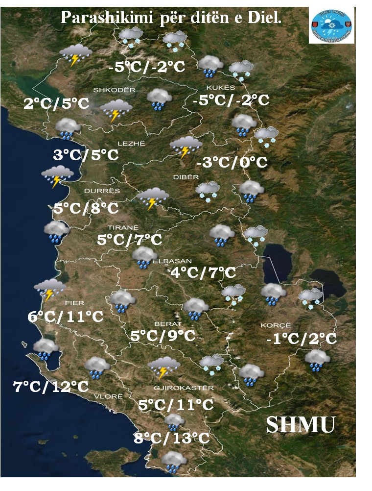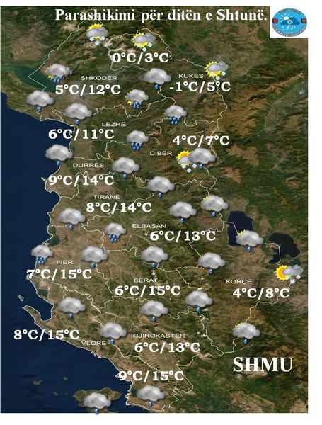 Reshjet e dëborës do të rikthehen, në Alpe dhe relievet malore veri-verilindje-juglindje të vendit në lartësitë mbi 600-700metër me intensitet të ulët dhe lokalisht mesatar.