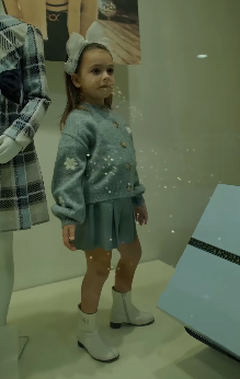 Vogëlushja simpatike po reklamon veshjet e një marke që po pëlqehet shumë nga fëmijët, duke tërhequr vëmendje të madhe në rrjete sociale.