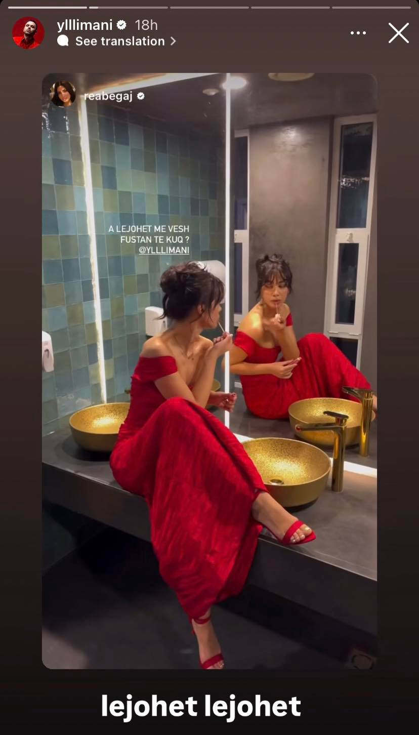 Krahas video Ylli shkruan: Lejohet lejohet, në përgjigje të asaj që ka shkruar modelja në Instastoryn e saj: A lejohet me vesh fustan të kuq Yll Limani.