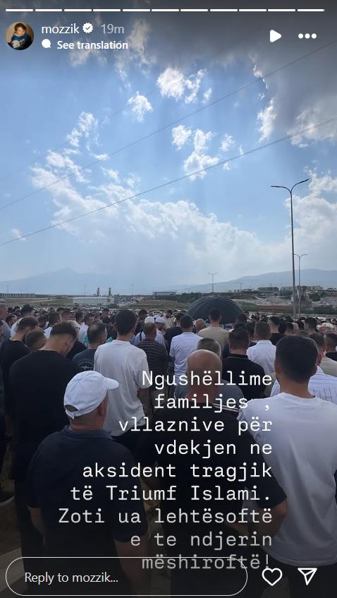 ”Ngushëllime familjes, vllaznive për vdekjen në aksident tragjik të Triumf Islami. Zoti ua lehtësoftë e të ndjerin e mëshiroftë!”, ka shkruar Mozzik.