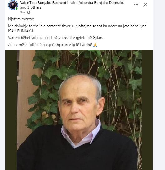 Me dhimbje të thellë e zemër të thyer ju njoftojmë se sot ka ndërruar jetë babai ynë ISAH BUNJAKU.