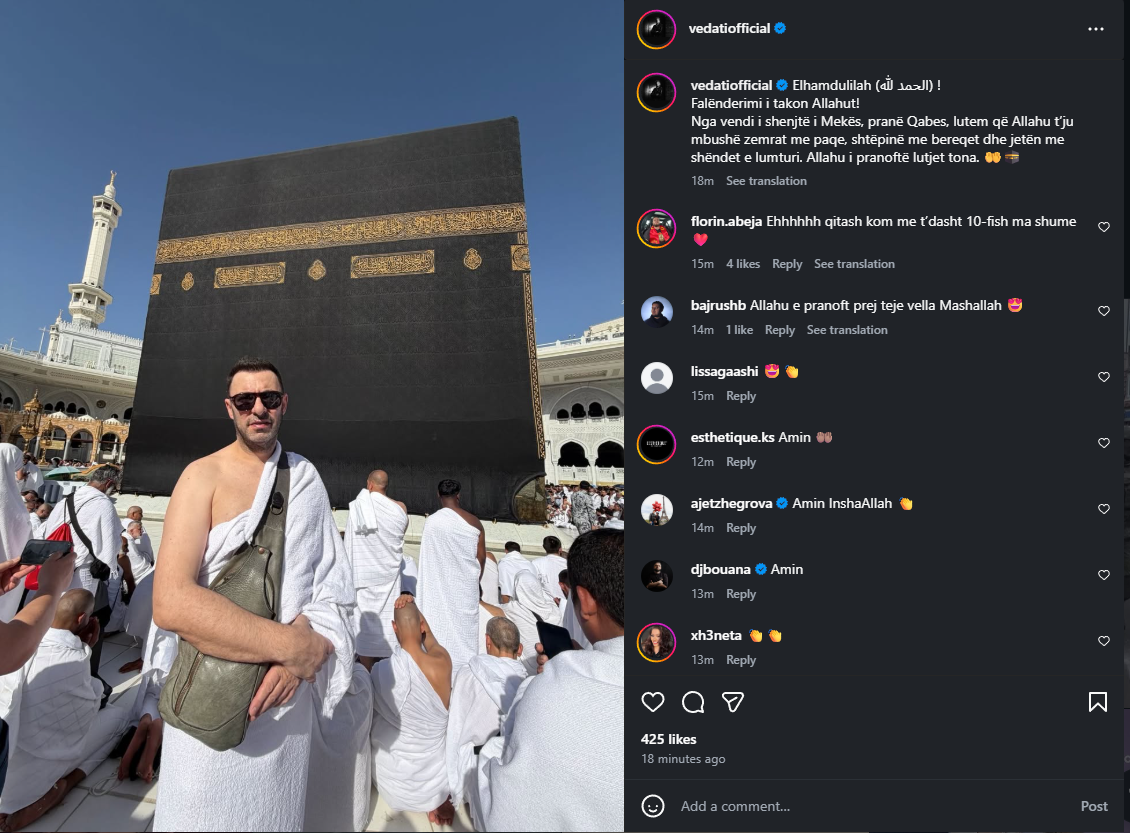 Aktori i njohur Vedat Bajrami ka ndarë me ndjekësit e tij një moment të veçantë nga jeta e tij shpirtërore, duke njoftuar se ndodhet në vendin e shenjtë të Mekës, pranë Qaba. Përmes një postimi në rrjetet sociale, ai bëri të ditur se ka realizuar pelegrinazhin e shenjtë dhe po kryen ritualet fetare.
