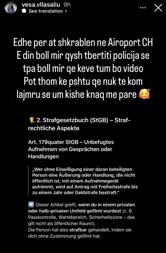 Ish- banorja e Big Brother Vip Kosova, ka reaguar pas një situtë jo shumë të këndshme, që sipas saj ka ndodhur së fundmi në një aeroport në Zvicër.