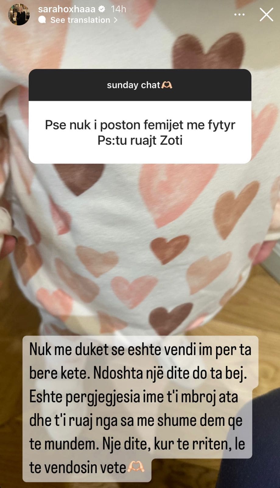 E pyetur pse në asnjë moment nuk e nxjer fytyrën e fëmijëve të saj ajo shprehet: