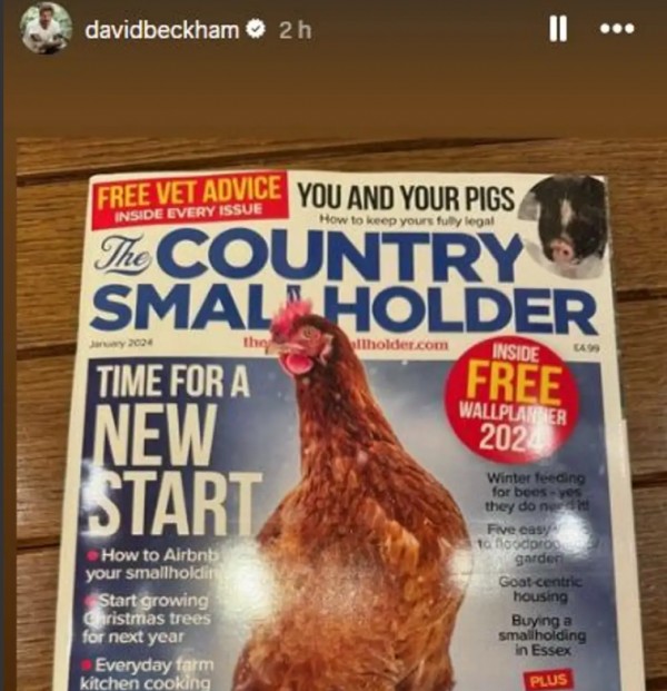 Bashkëpronari i Inter Miami, Beckham, kujdestë për një tufë pulash dhe në ditën e Shën Valentinit, ai ka falënderuar gruan e tij Victoria që i dhuroi edicionin më të fundit të revistës The Country Smallholder, e cila ofron lajme, informacione praktike, udhëzime dhe rubrika mbi bujqësinë, kopshtarinë organike, këshilla veterinare e të tjera.