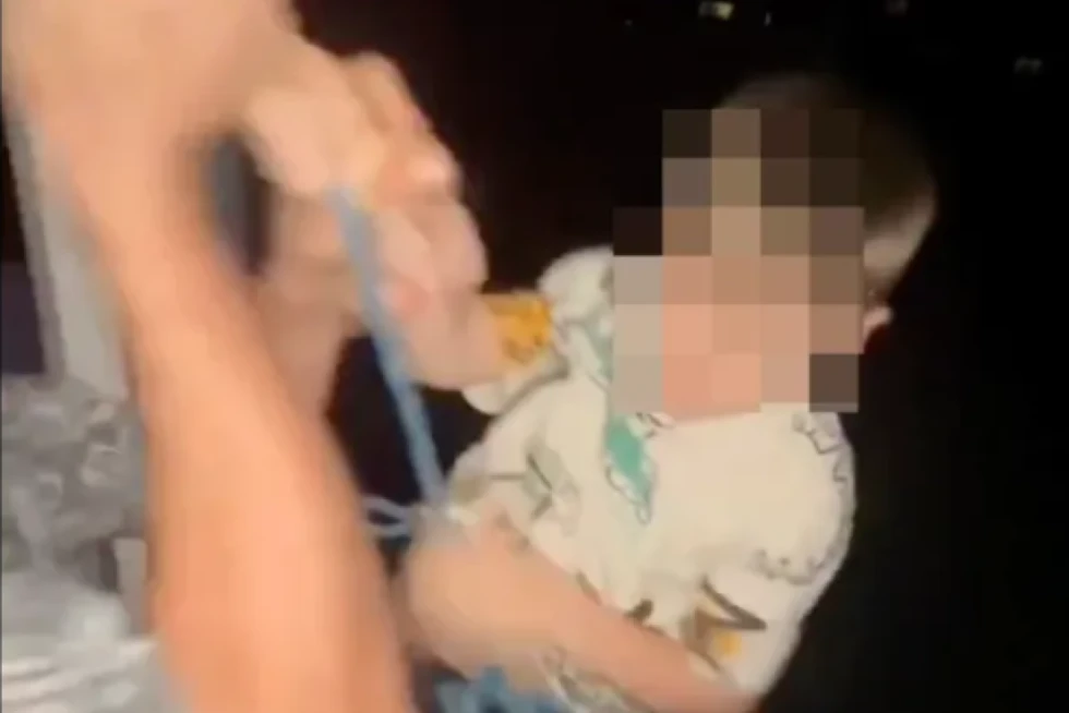 Ngjarja raportohet të ketë ndodhur në qytetin e Voronezhit, ku babai i fëmijës së mitur 5-6 vjeçar shfaqet duke qeshur me shokët teksa nis të zbresë me litar djalin e tij.